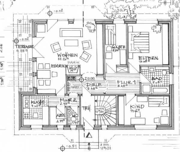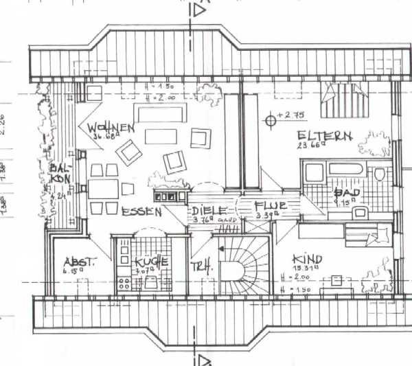 Aufgabenstellung war ein Haus für mehrere Generationen zu konzipieren und für alle genügend Freiraum zu schaffen. Zur Ausführung kam ein 2 Familienwohnhaus mit Krüppelwalmdach, voll ausgebautem Kellerbereich mit Büro, Sauna, großen Spielflächen für die Kinder und einer neben dem Haus stehender Doppelgarage. Die Dachgeschoß- wohnung erhielt einen großzügigen vorgesetzten Holzbalkon Im Bereich des Eingangsbereiches und der Terasse wurde das Dach weiter abgeschleppt.