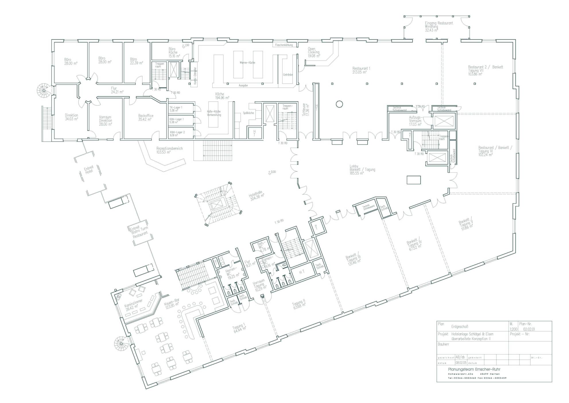 Nach Durchschreiten des Hoteleinganges oder des Restauranteinganges empfängt den Gast eine der Welt des Bergbaus nachempfundenen Eingangsbereich der „Kumpel“ [ Bezeichnung für einen Bergmann im Ruhrgebiet unter Tage ] ( Stempeluhr , Hängebank [ Bereich über mehrere Ebenen vor dem Förderkorb zur Personenbeförderung] ) und der Führungsebene eines Bergwerkes ( Dies wird durch technische Konstruktion, Dekoration und Wandmalereien verdeutlicht ).