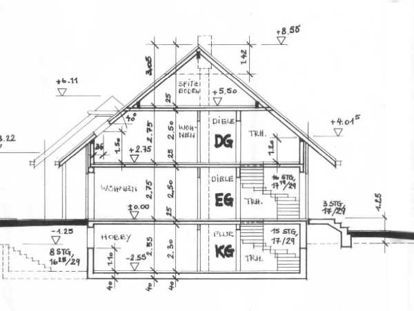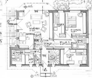 Aufgabenstellung war ein Haus für mehrere Generationen zu konzipieren und für alle genügend Freiraum zu schaffen. Zur Ausführung kam ein 2 Familienwohnhaus mit Krüppelwalmdach, voll ausgebautem Kellerbereich mit Büro, Sauna, großen Spielflächen für die Kinder und einer neben dem Haus stehender Doppelgarage. Die Dachgeschoß- wohnung erhielt einen großzügigen vorgesetzten Holzbalkon Im Bereich des Eingangsbereiches und der Terasse wurde das Dach weiter abgeschleppt.
