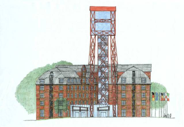 Über den Wellnessbereich bietet das Hotel im Förderturm in dem obersten Bereich ein Bistro über 2 Ebene an.