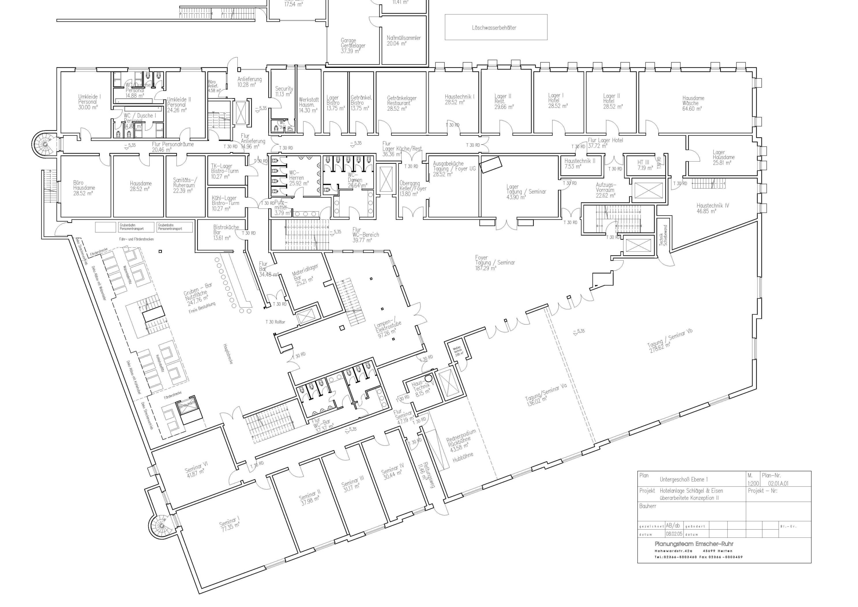 Im Untergeschoß hat der Gast die Möglichkeit die großflächige Grubenbar zu nutzen. Hier wird auf 2 Ebenen , die durch eine Treppe und einem Behelfsaufzug ( Blindschacht ) verbunden sind ,die Arbeit der Bergleute in einem Untertagebetrieb in unterschiedlichen Zeitepochen dargestellt. Zwischen der Grubenbar und dem Foyer des großen Tagungsraumes im Untergeschoß bietet die Lampen- und Elektrostube über teilweise 2 Ebenen gehobene Spielautomaten und andere gehobene Spielmöglichkeiten an.